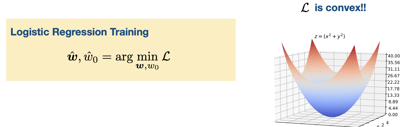 However, for Logistic Regression, the equation used to find the best parameters—where the gradient of the loss equals zero ()—has no closed-form solution. This means we cannot simply rearrange the equation to find the weights; we have to “search” for them.